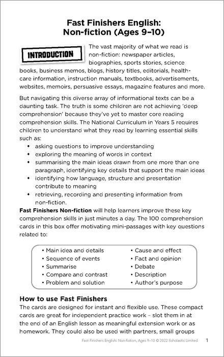 Fast Finishers English: Non-fiction Ages 9-10 Get 20% OFF across the Scholastic Shop