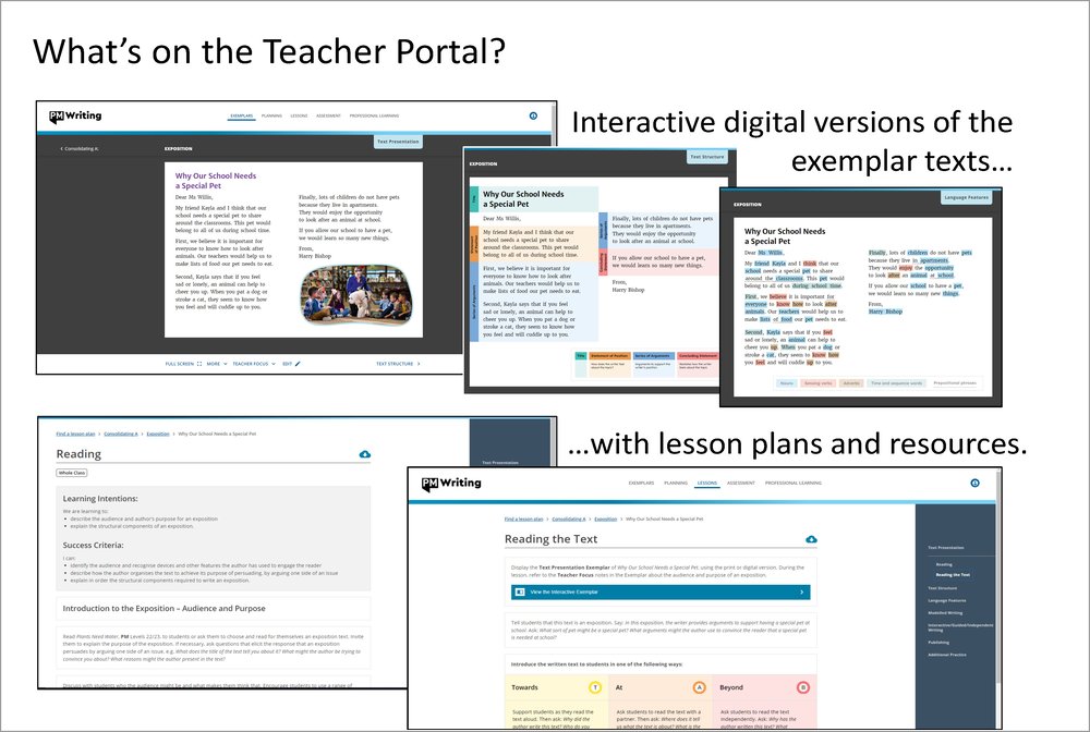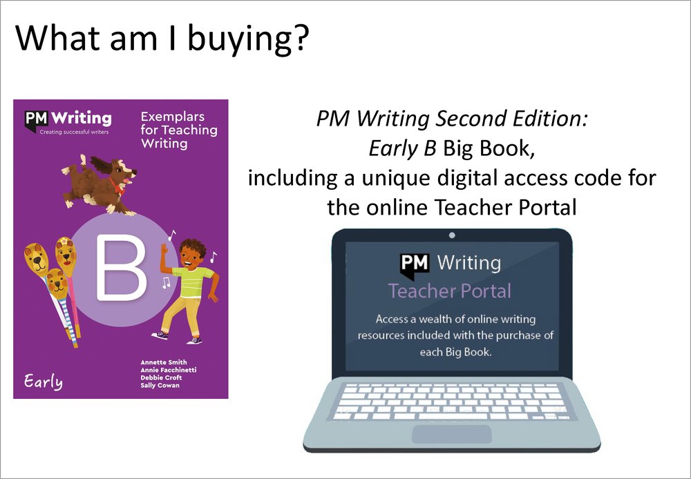 - Access the PM Writing Teacher Portal for Early B texts with the unique code on the inside front cover.