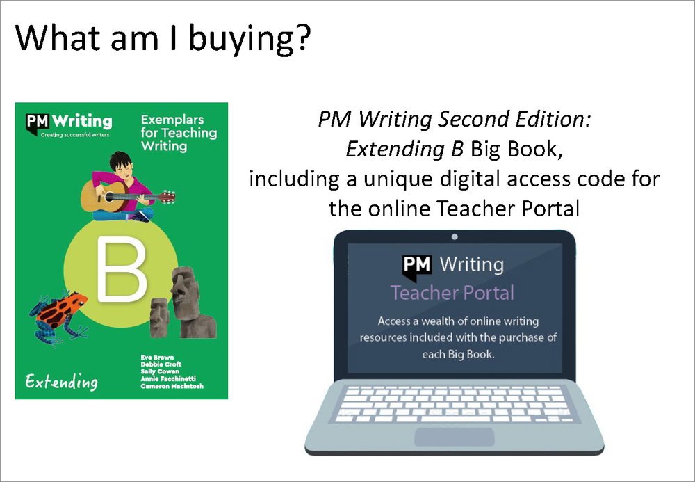 - Access the PM Writing Teacher Portal for Extending B texts with the unique code on the inside front cover.