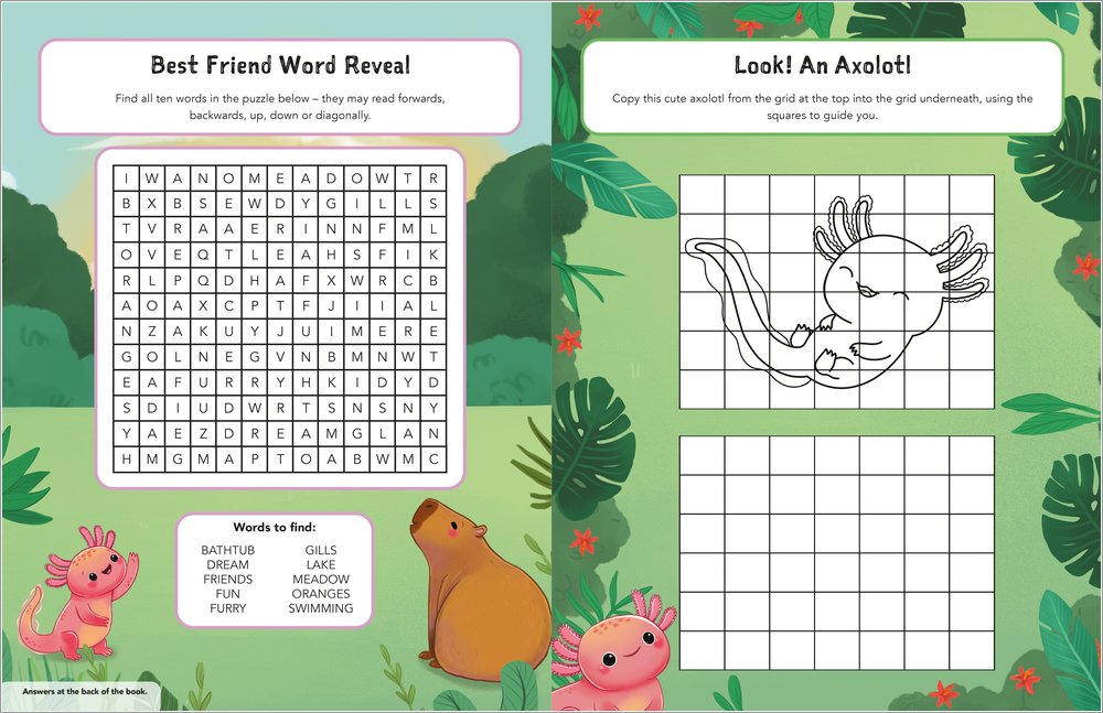 This sticker activity book is packed full of the cutest capybaras, axolotls and other animal friends.